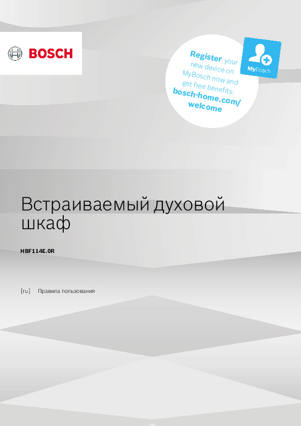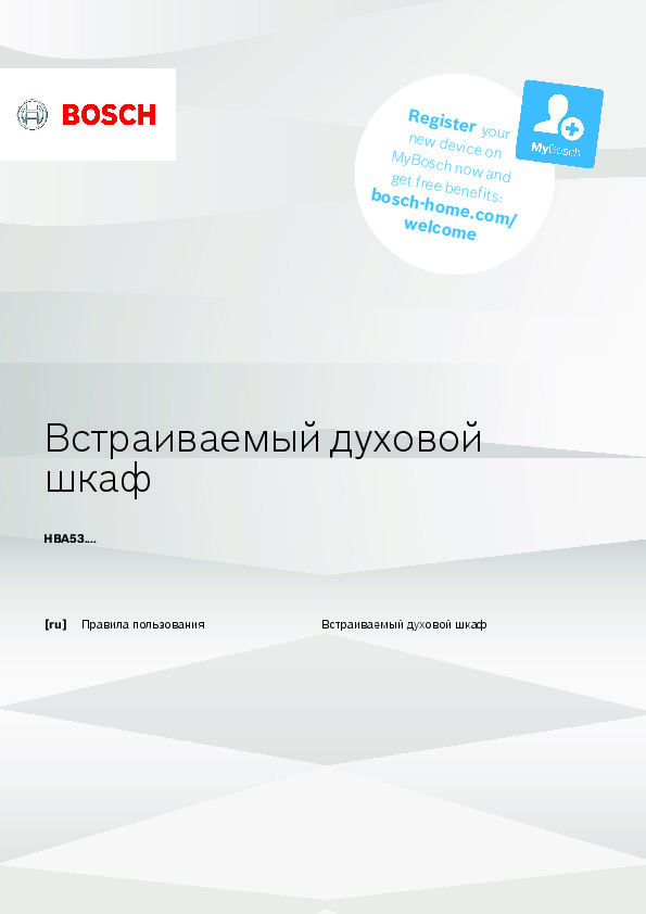 Инструкция по эксплуатации для духового шкафа Bosch HBG 23B360R — скачайте официальное руководство для Bosch HBG. Инструкция поможет быстро разобраться с работой духовые шкафы и использовать его без ошибок.