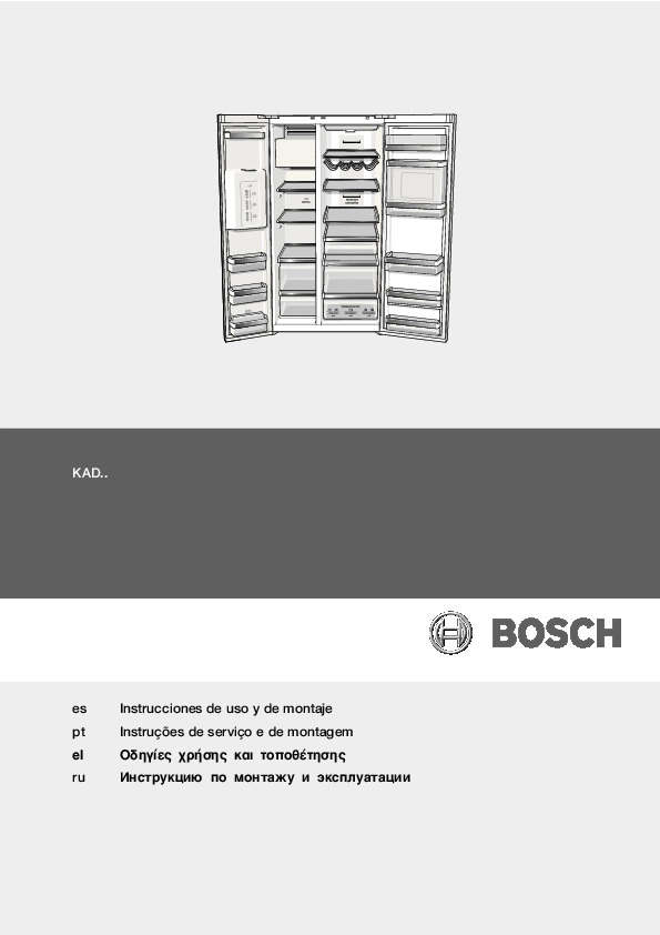 Инструкция по монтажу для холодильника Bosch KAD93VBFP — скачайте официальное руководство для Bosch KAD93VBFP. Инструкция поможет быстро разобраться с работой холодильники и использовать его без ошибок.