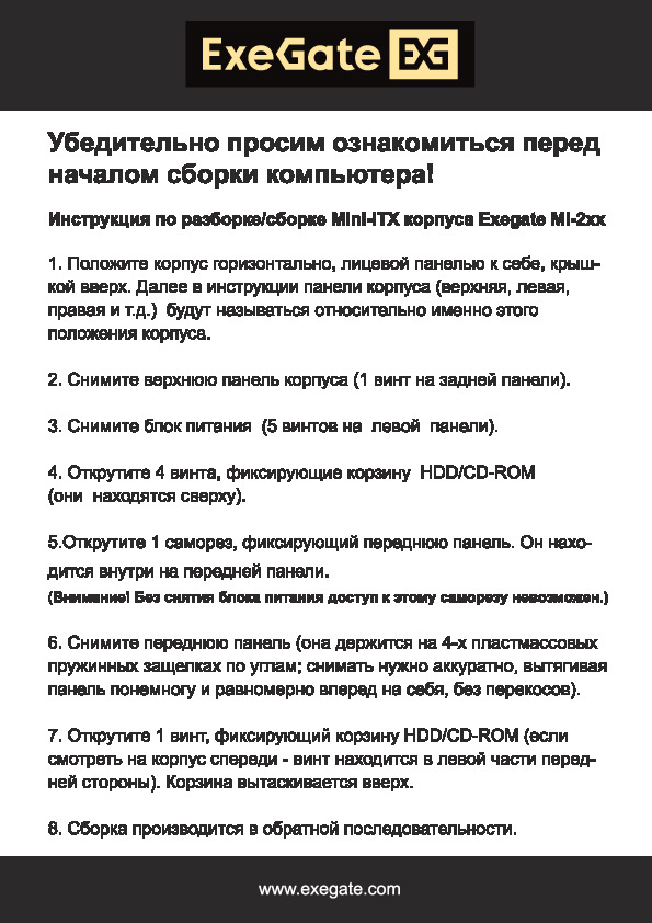 Скачайте инструкции и руководства пользователя для удобного и эффективного использования техники ExeGate, чтобы максимально узнать о всех возможностях продуктов!