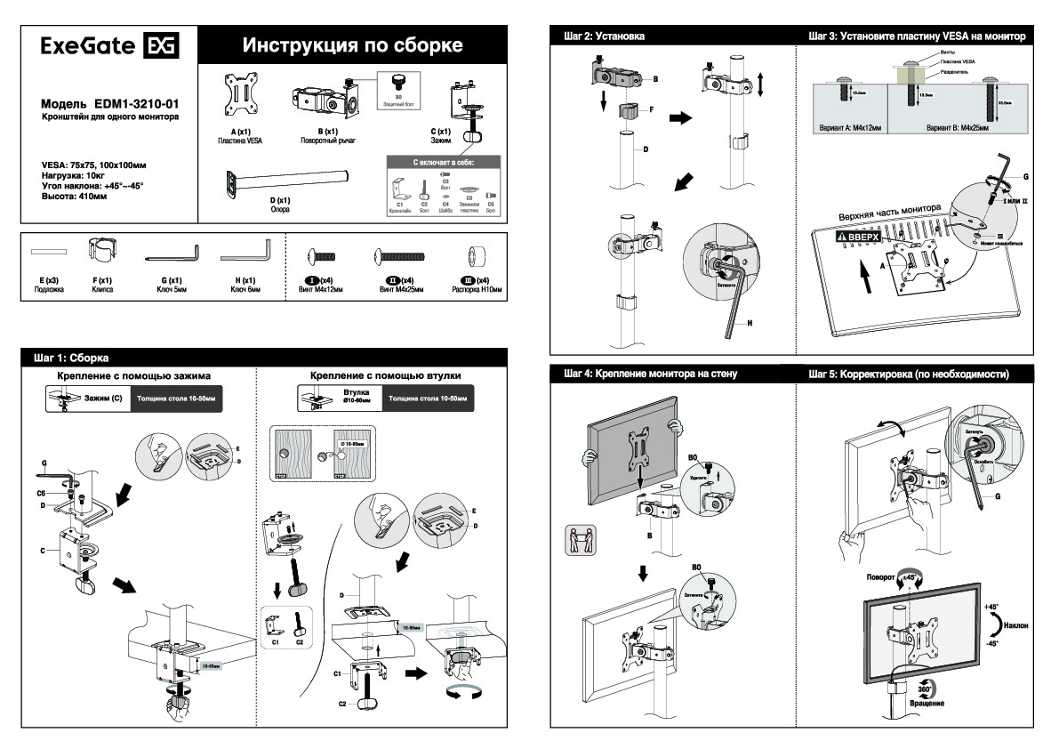 В данной категории вы найдете информацию о различных моделях креплений для мониторов ExeGate, их характеристиках и особенностях. Для вашего удобства предоставляется возможность скачать инструкции по сборке, которые содержат подробные шаги по установке и настройке креплений. Это поможет вам без труда смонтировать ваш монитор и настроить его для максимального комфорта и продуктивности.