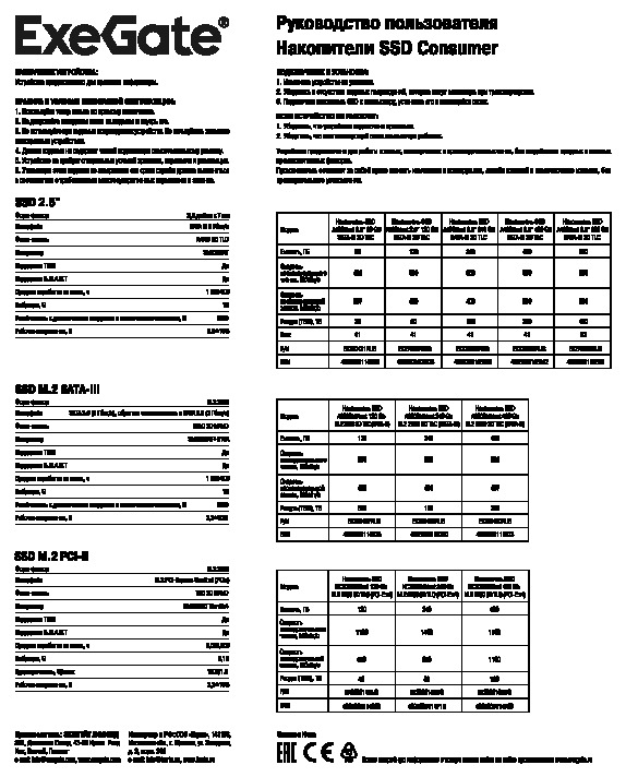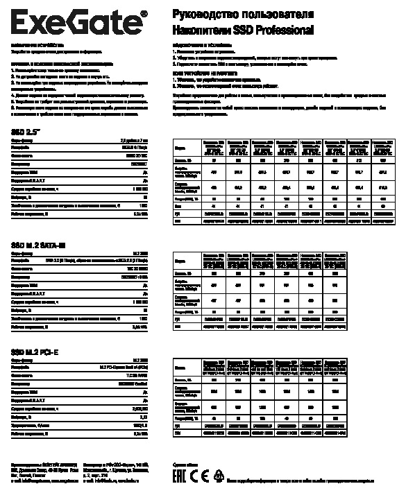 В данной категории вы найдете информацию о различных моделях накопителей SSD ExeGate, их технических характеристиках и особенностях. Для вашего удобства предоставляется возможность скачать руководство пользователя, в котором содержатся подробные инструкции по установке, настройке и эксплуатации накопителей. Это позволит вам максимально эффективно использовать ваше устройство и оптимизировать работу с данными.