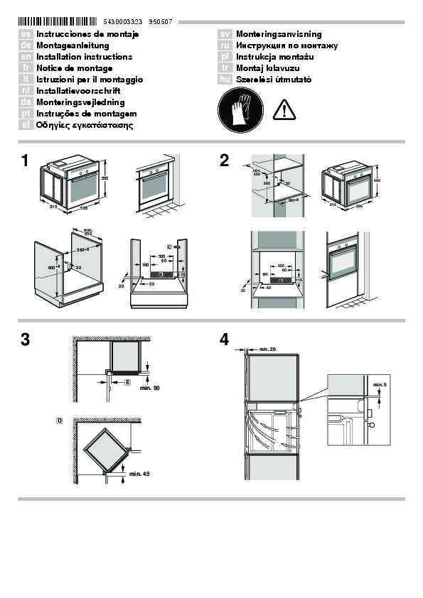 Инструкция по установке для духового шкафа Bosch HBG656RS1M