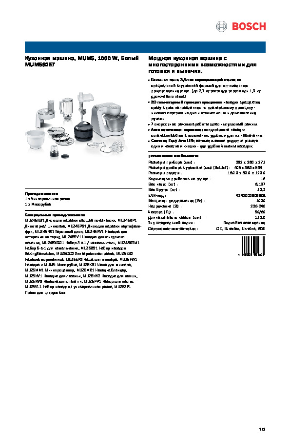 Инструкция по эксплуатации 3 для комбайна Bosch MUM58257 — скачайте официальное руководство для Bosch MUM58257. Инструкция поможет быстро разобраться с работой комбайны и использовать его без ошибок.