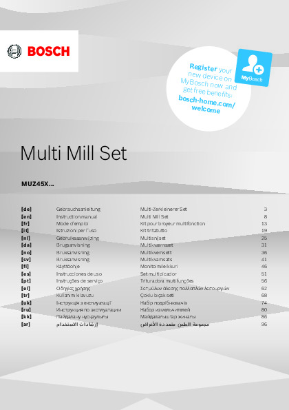 Инструкция по эксплуатации 7 для комбайна Bosch MUM58257 — скачайте официальное руководство для Bosch MUM58257. Инструкция поможет быстро разобраться с работой комбайны и использовать его без ошибок.