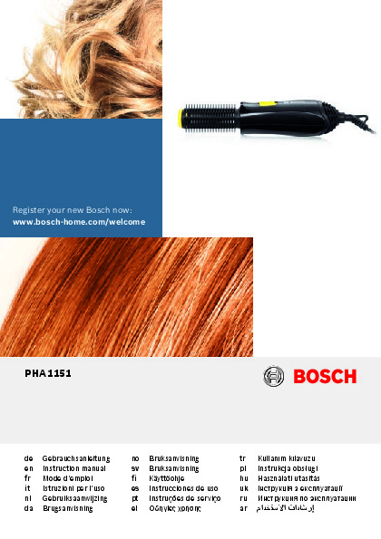 Инструкция по эксплуатации для фена и выпрямителя Bosch PHA1151 — скачайте официальное руководство для Bosch PHA1151. Инструкция поможет быстро разобраться с работой фены и выпрямители и использовать его без ошибок.