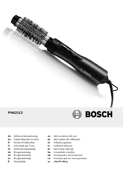 Инструкция по эксплуатации для фена и выпрямителя Bosch PHA2112 — скачайте официальное руководство для Bosch PHA2112. Инструкция поможет быстро разобраться с работой фены и выпрямители и использовать его без ошибок.