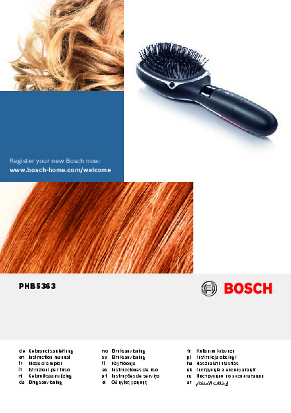 Инструкция по эксплуатации для фена и выпрямителя Bosch PHC 5363 — скачайте официальное руководство для Bosch PHC. Инструкция поможет быстро разобраться с работой фены и выпрямители и использовать его без ошибок.