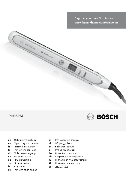 Инструкция по эксплуатации для фена и выпрямителя Bosch PHS 5987 — скачайте официальное руководство для Bosch PHS. Инструкция поможет быстро разобраться с работой фены и выпрямители и использовать его без ошибок.