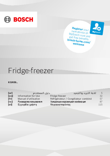 Инструкция по эксплуатации для холодильника Bosch KGN56CI30U — скачайте официальное руководство для Bosch KGN56CI30U. Инструкция поможет быстро разобраться с работой холодильники и использовать его без ошибок.