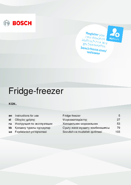 Инструкция по эксплуатации для холодильника Bosch KGN39UW27R — скачайте официальное руководство для Bosch KGN39UW27R. Инструкция поможет быстро разобраться с работой холодильники и использовать его без ошибок.
