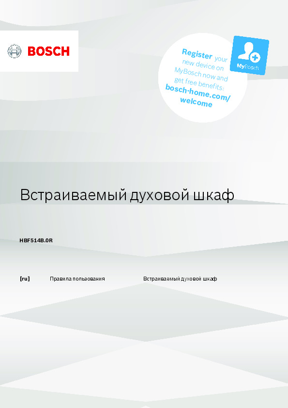 Инструкция по эксплуатации для духового шкафа Bosch HBG 23B360R — скачайте официальное руководство для Bosch HBG. Инструкция поможет быстро разобраться с работой духовые шкафы и использовать его без ошибок.