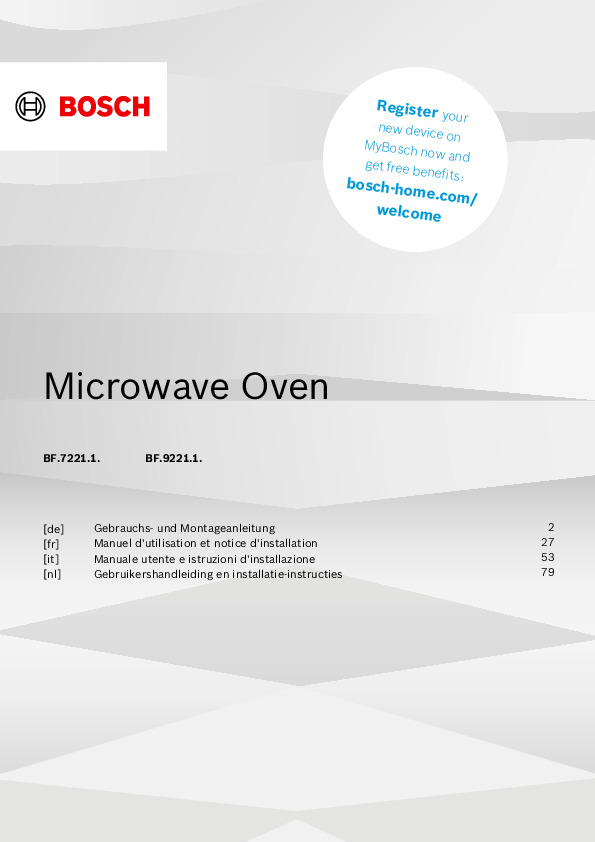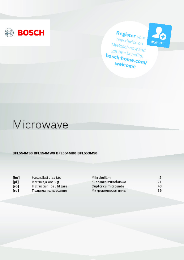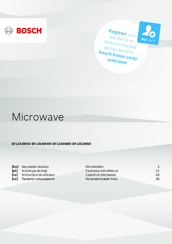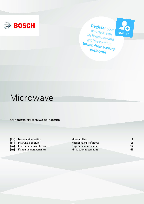 Bosch microwave ovens combine innovative technologies, ergonomic design, and smart functions for fast and even cooking. Carefully engineered solutions like the 3D microwave distribution system, automatic programs, and defrost function ensure high efficiency and user convenience. Download official manuals and guides to unlock the full functionality of your microwave oven and enjoy optimal comfort and safety.