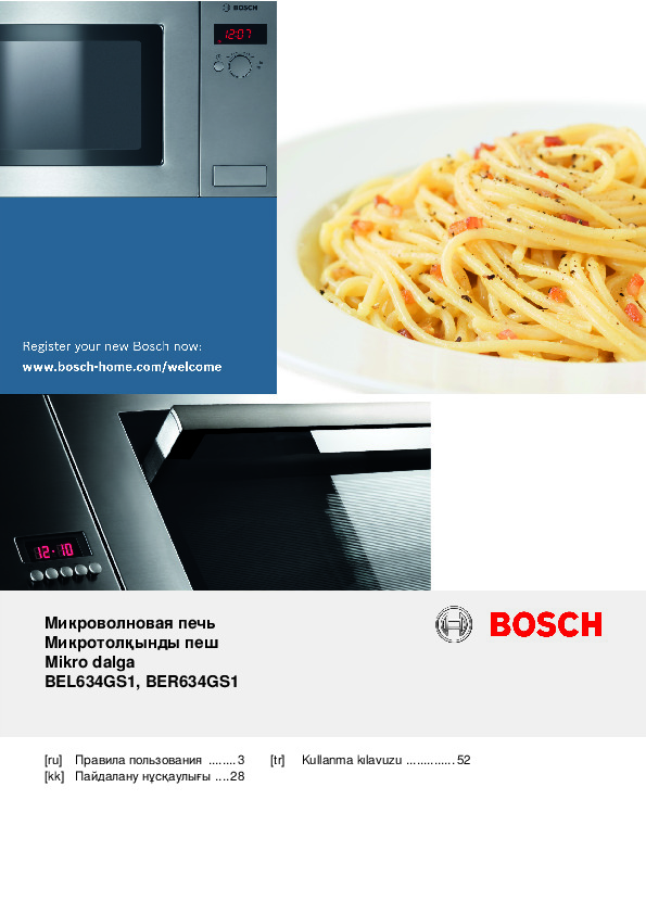 Микроволновые печи Bosch — это гармония инновационных технологий, эргономичного дизайна и интеллектуальных функций для быстрого и равномерного приготовления. Продуманные решения, такие как система 3D-распределения микроволн, автоматические программы и функция разморозки, обеспечивают высокую эффективность и удобство использования. Скачайте официальные инструкции и руководства, чтобы раскрыть полный функционал вашей микроволновой печи и пользоваться ей максимально комфортно и безопасно.