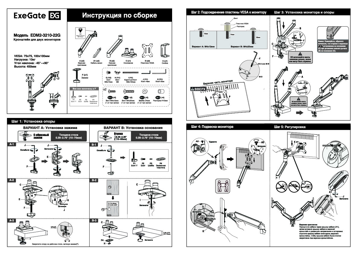 В данной категории вы найдете информацию о различных моделях креплений для мониторов ExeGate, их характеристиках и особенностях. Для вашего удобства предоставляется возможность скачать инструкции по сборке, которые содержат подробные шаги по установке и настройке креплений. Это поможет вам без труда смонтировать ваш монитор и настроить его для максимального комфорта и продуктивности.