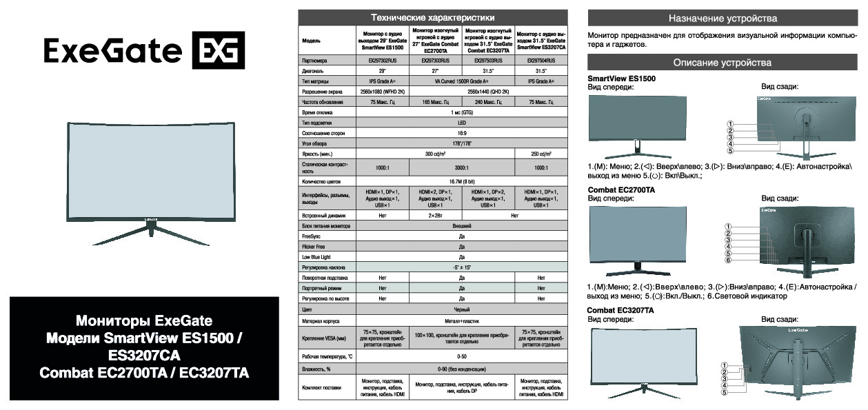 В данной категории вы найдете информацию о различных моделях мониторов ExeGate, их технических характеристиках и особенностях. Для удобства пользователей предоставляется возможность скачать руководство пользователя, в котором содержатся подробные инструкции по установке, настройке и эксплуатации мониторов. Это поможет вам максимально эффективно использовать все возможности вашего устройства и улучшить качество работы.