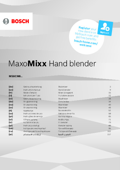 Инструкция по эксплуатации 1 для блендера Bosch MS8CM6160