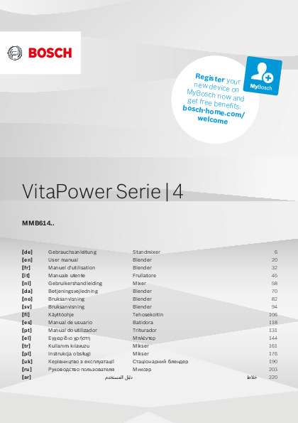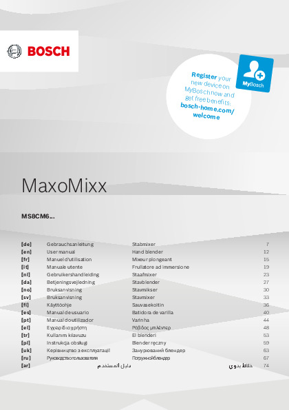Инструкция по эксплуатации 2 для блендера Bosch MS8CM6160