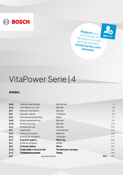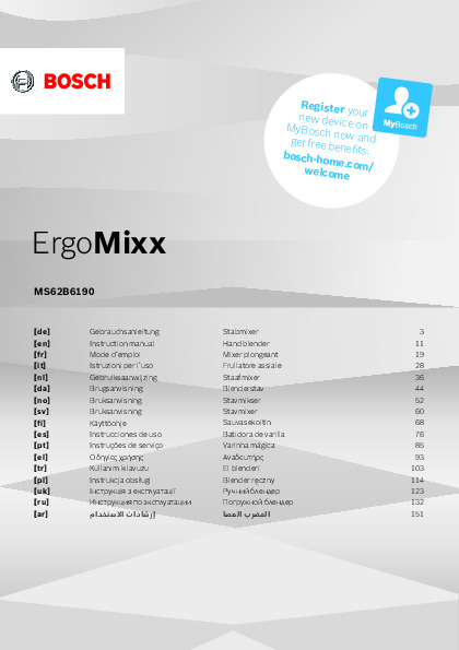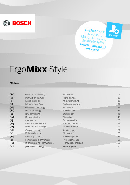 Инструкция по эксплуатации 2 для блендера Bosch MS6CM4150