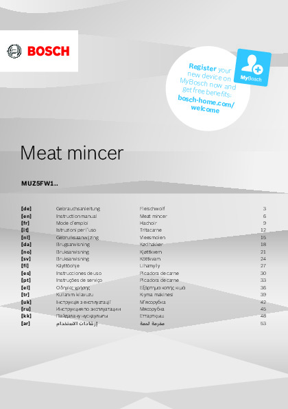 Инструкция по эксплуатации 8 для комбайна Bosch MUM58257 — скачайте официальное руководство для Bosch MUM58257. Инструкция поможет быстро разобраться с работой комбайны и использовать его без ошибок.
