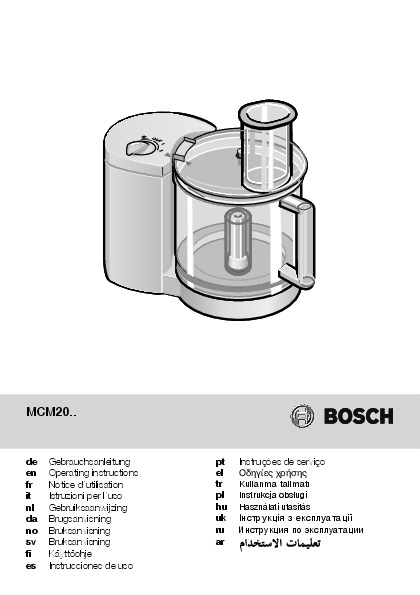 Инструкция по эксплуатации для комбайна Bosch MCM 2050 — скачайте официальное руководство для Bosch MCM. Инструкция поможет быстро разобраться с работой комбайны и использовать его без ошибок.
