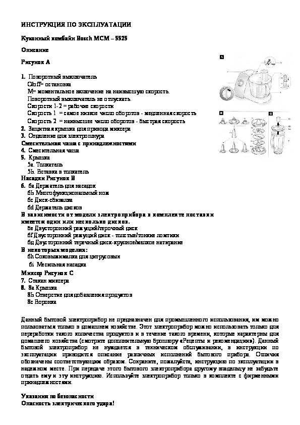 Инструкция по эксплуатации для комбайна Bosch MCM 5525