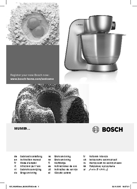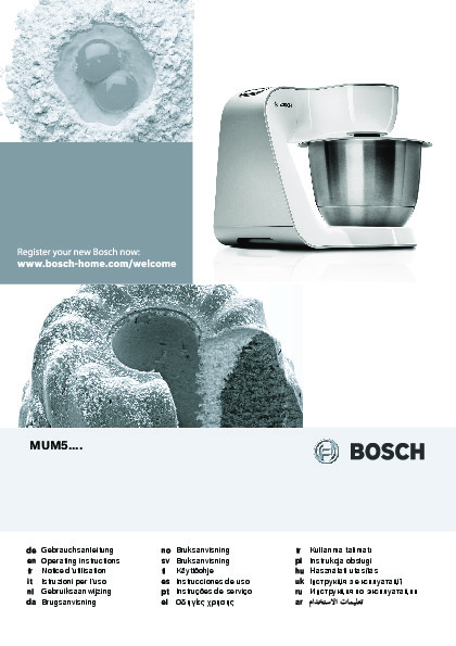 Инструкция по эксплуатации для комбайна Bosch MUM 54D00 — скачайте официальное руководство для Bosch MUM. Инструкция поможет быстро разобраться с работой комбайны и использовать его без ошибок.