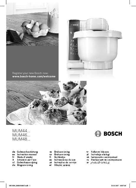 Инструкция по эксплуатации для комбайна Bosch MUM 48A1 — скачайте официальное руководство для Bosch MUM. Инструкция поможет быстро разобраться с работой комбайны и использовать его без ошибок.