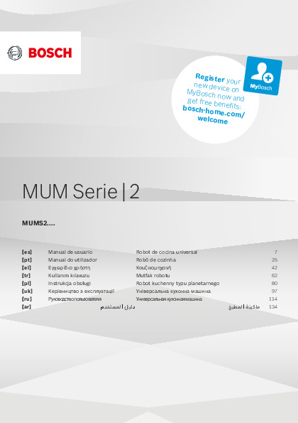 Инструкция по эксплуатации для комбайна Bosch MUMS2EW00 — скачайте официальное руководство для Bosch MUMS2EW00. Инструкция поможет быстро разобраться с работой комбайны и использовать его без ошибок.