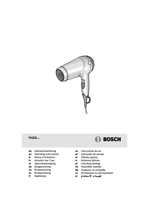 Инструкция по эксплуатации для фена и выпрямителя Bosch PHC 5363 — скачайте официальное руководство для Bosch PHC. Инструкция поможет быстро разобраться с работой фены и выпрямители и использовать его без ошибок.