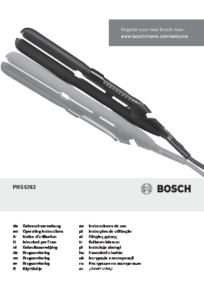 Инструкция по эксплуатации для фена и выпрямителя Bosch PHS 5263 — скачайте официальное руководство для Bosch PHS. Инструкция поможет быстро разобраться с работой фены и выпрямители и использовать его без ошибок.