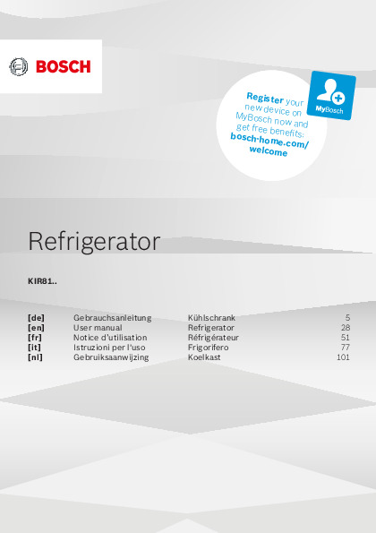 Bosch refrigerators combine advanced cooling technologies, elegant design, and smart storage systems for maximum freshness preservation. Thoughtful features like VitaFresh technology, zero-degree zone, and NoFrost system ensure optimal conditions and long-lasting performance. Download official manuals and guides to unlock the full functionality of your refrigerator and enjoy maximum convenience and reliability.